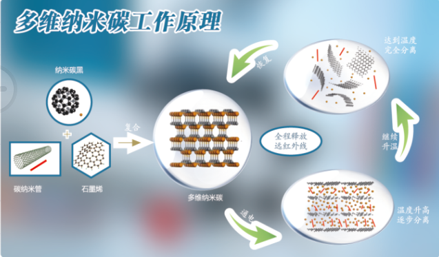 多维石墨烯碳纳米材料是由不同维度纳米级石墨烯,按照独有的科学配方和生产工艺精制而成,并赋予发热芯片自我循环更新的生命力,极大的延长了石墨烯发热地暖的寿命,使用寿命长达50年以上,与建筑同寿,同时解决了传统电采暖地材加热效果衰减的问题。